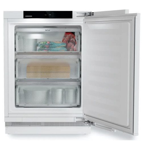 Atidarius „Liebherr“ šaldiklio stalčius, Jus nudžiugins ne tik maisto produktų vaizdas, bet ir patrauklus apšvietimas – Tuo pasirūpina galingi, ilgaamžiai ir aplinką tausojantys LED šviestuvai. Apšvietimas leidžia dar geriau matyti turinį ir kartu yra unikalus dizaino elementas.