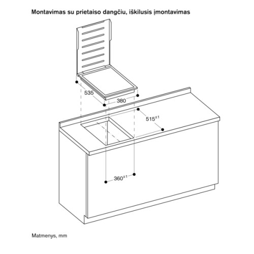 • Prietaisas gali būti įstatytas į stalviršį iš viršaus