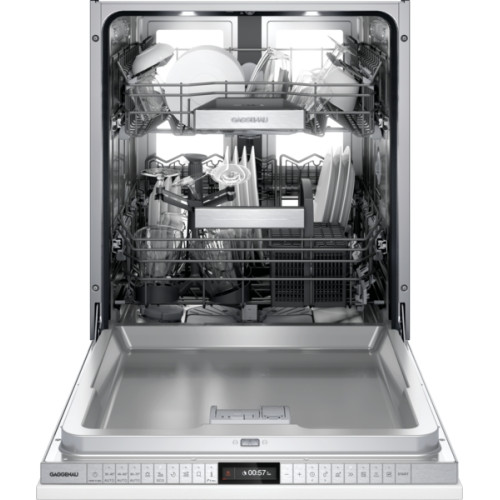 TFT ekranas, rodantis likusį arba pabaigos laiką, pranešantis apie druskos ir skalavimo priemonės papildymą, vandens įtekėjimą.