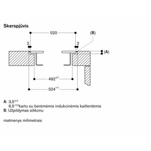 - Prietaisas gali būti įstatytas į stalviršį iš viršaus