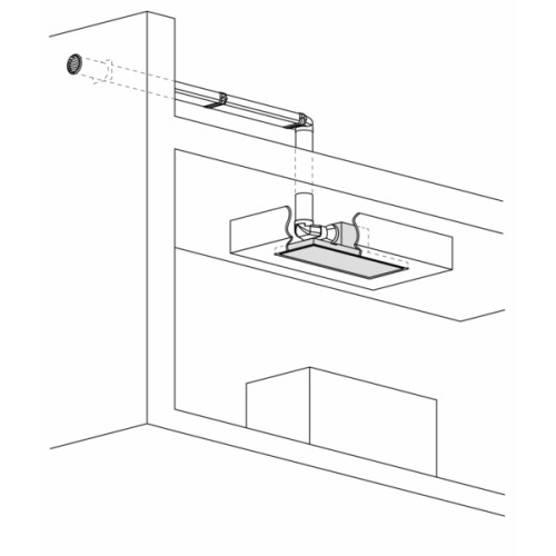 • Jei atstumas iki kaitlentės viršija 120 cm, lubinis gartraukis turi būti vertinamas kaip patalpos vėdinimo įrenginys, nes tiesioginis garų surinkimas bus ribotas. Reikalingas oro srautas apskaičiuojamas pagal 10–12 kartų patalpos tūrio oro apykaitą.
