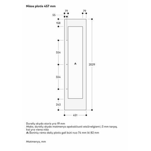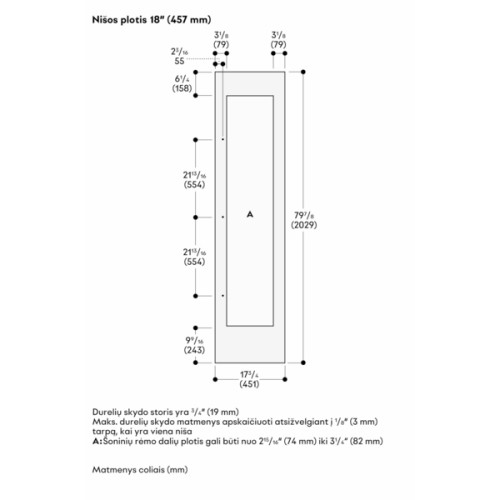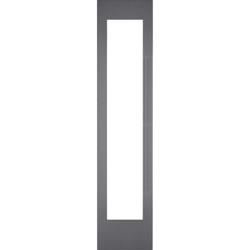 Tamsaus šlifuoto nerūdijančio plieno durų plokštės rėmas su rankena. Skirta 45,7 cm pločio prietaisams, su vyriais kairėje pusėje, plokštės storis 19 mm.